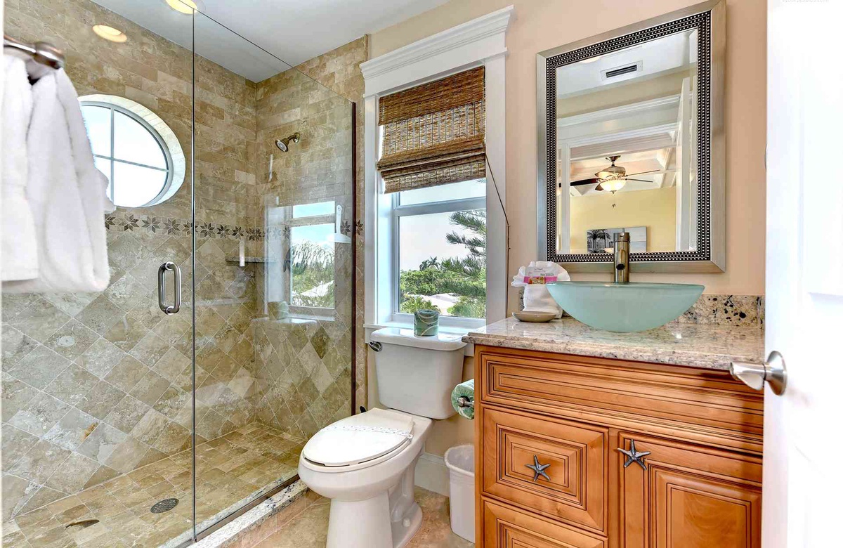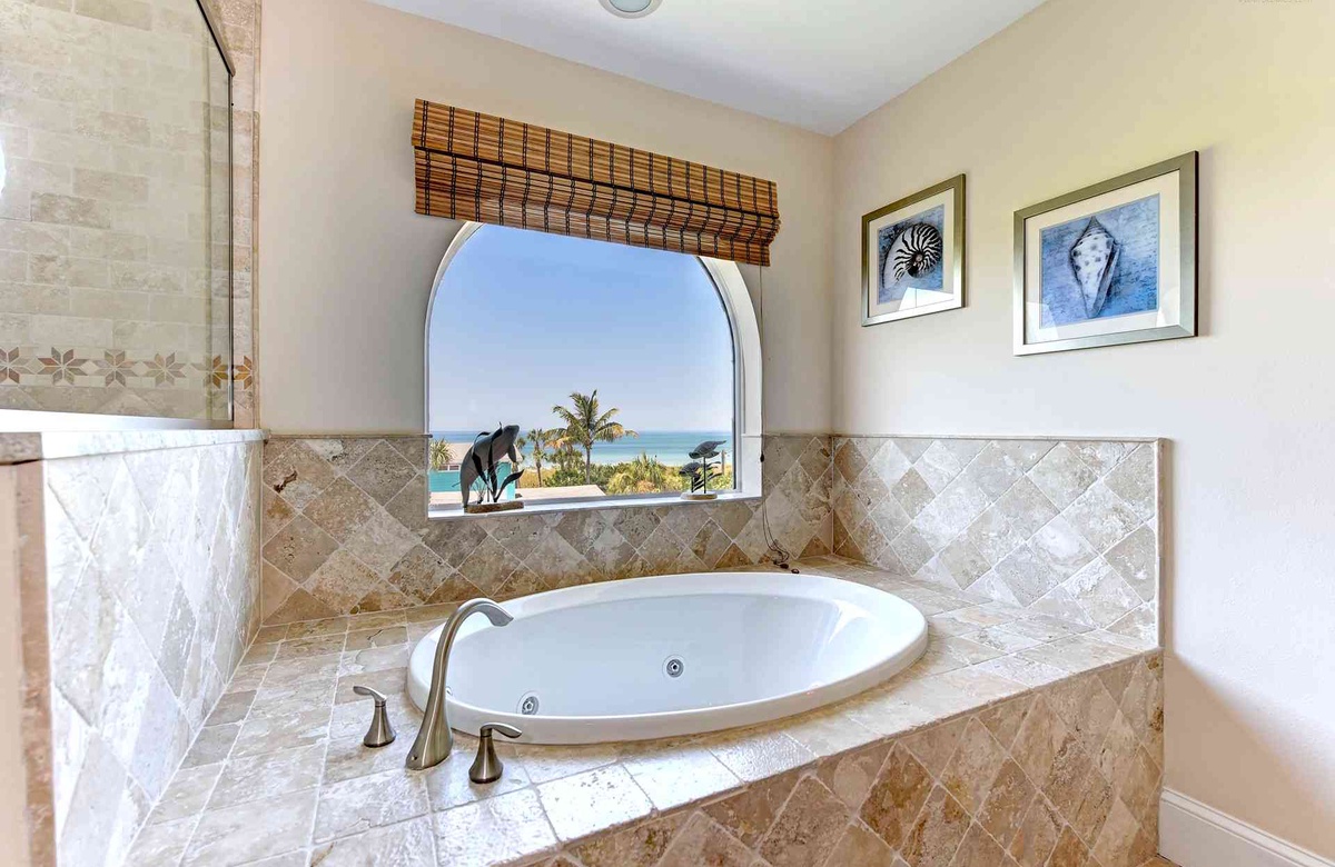 Wunderschönes Ferienhaus "Seashell Sunsets" mit Meerblick, 105 78th Street in Holmes Beach. (5) Schlafzimmer, (6) Bäder, für bis zu (10) Gäste: 2 Kingsize-Betten , 4 Einzelbetten, 2 Ausziehbetten and 2 Doppel-Ausziehcouchen. Privater beheizter Pool mit Spa, WLAN, Aufzug, Waschmaschine/Trockner, Dachterrasse, Geschirrspüler. Nur ein paar Schritte vom Meer.