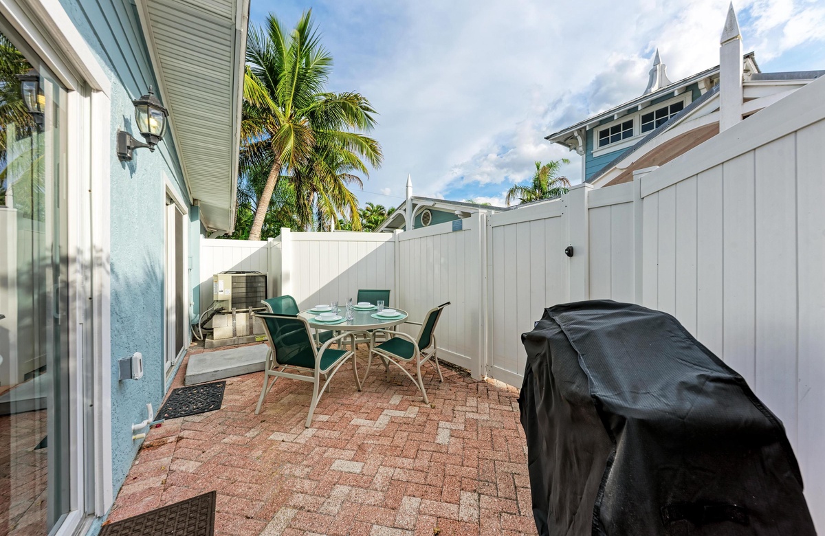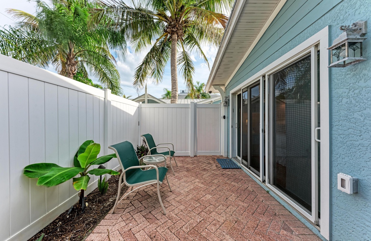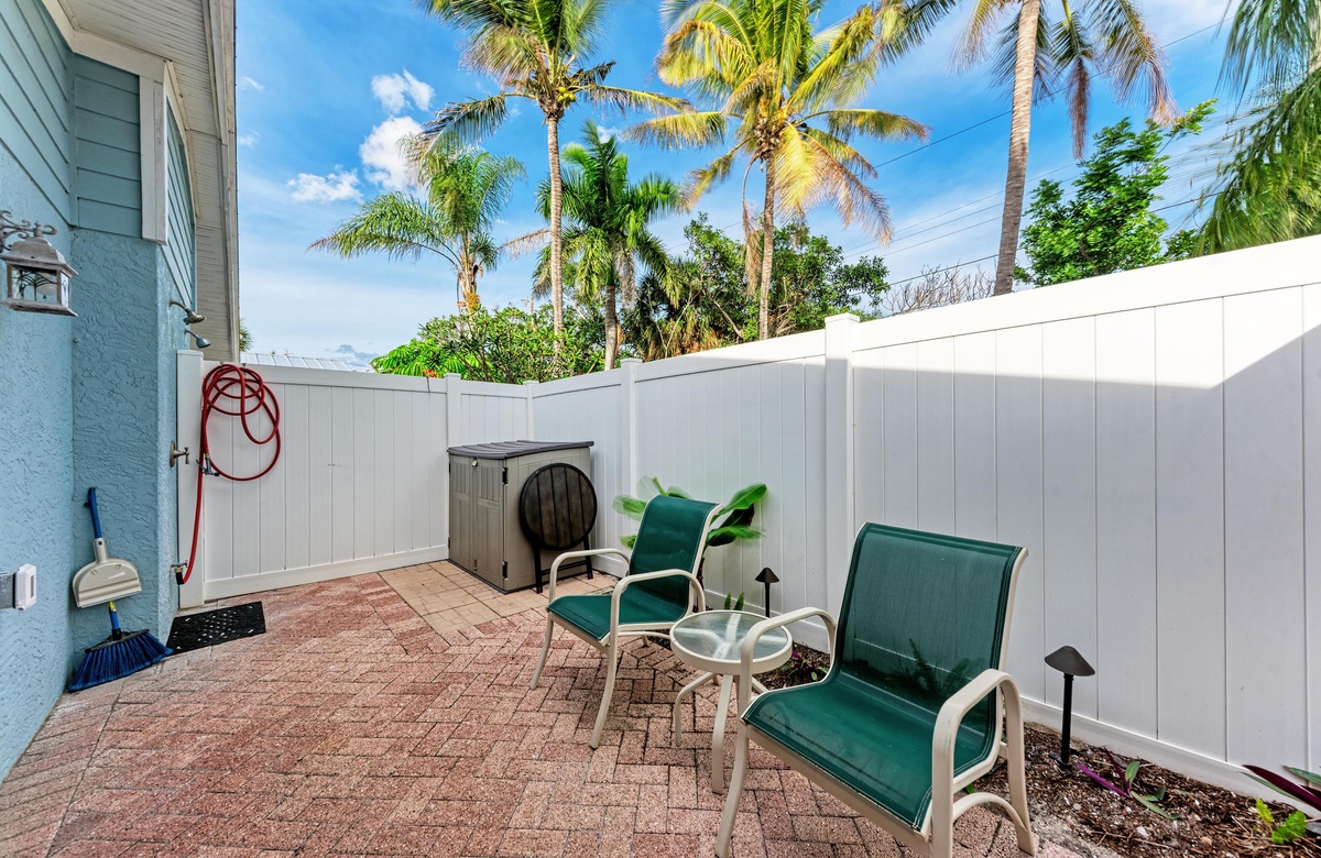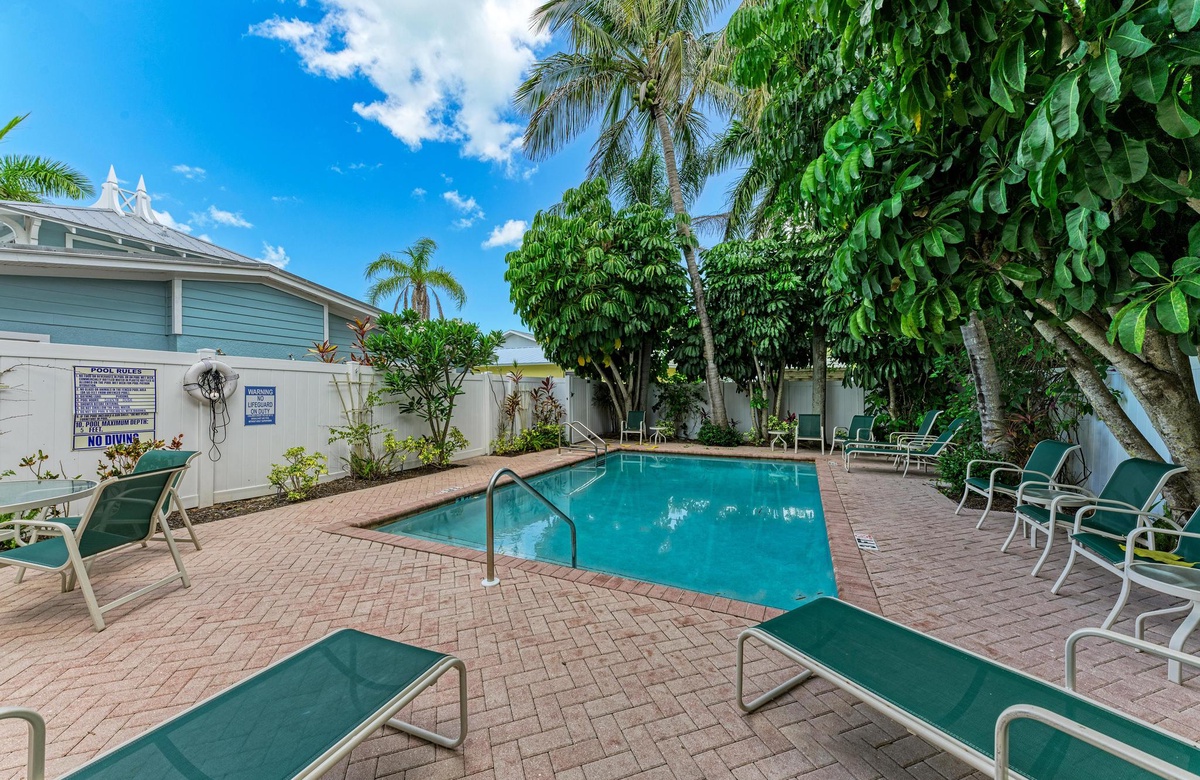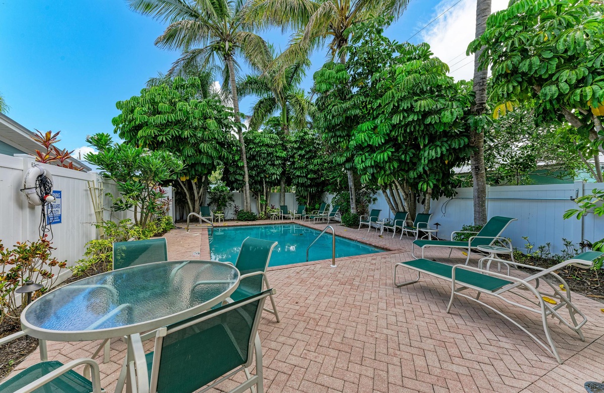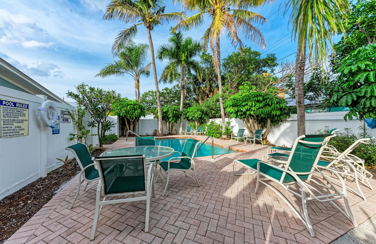 In der üppigen und tropischen Ecke der Star Fish Beach Anlage liegt der kristallklare beheizte Pool. Hier können es sich Gäste in den Sonnenliegen bequem machen und das Paradies genießen. Wenn Sie sich etwas Privatsphäre wünschen und trotzdem draußen bleiben wollen, gibt es eine private Terrasse mit Sichtschutz. Legen Sie die Füße auf den Terrassenmöbeln hoch und genießen mit dem verfügbaren Gasgrill ein "cook out" im Florida Stil.