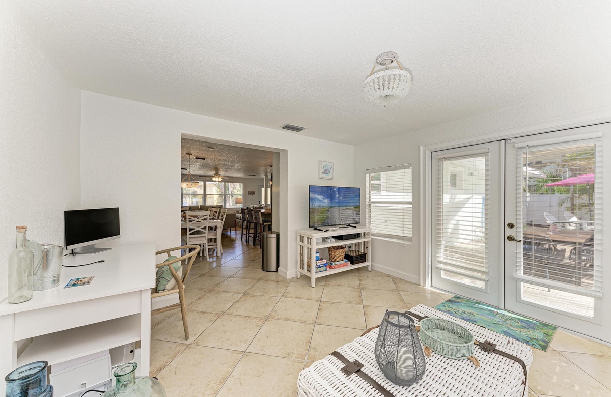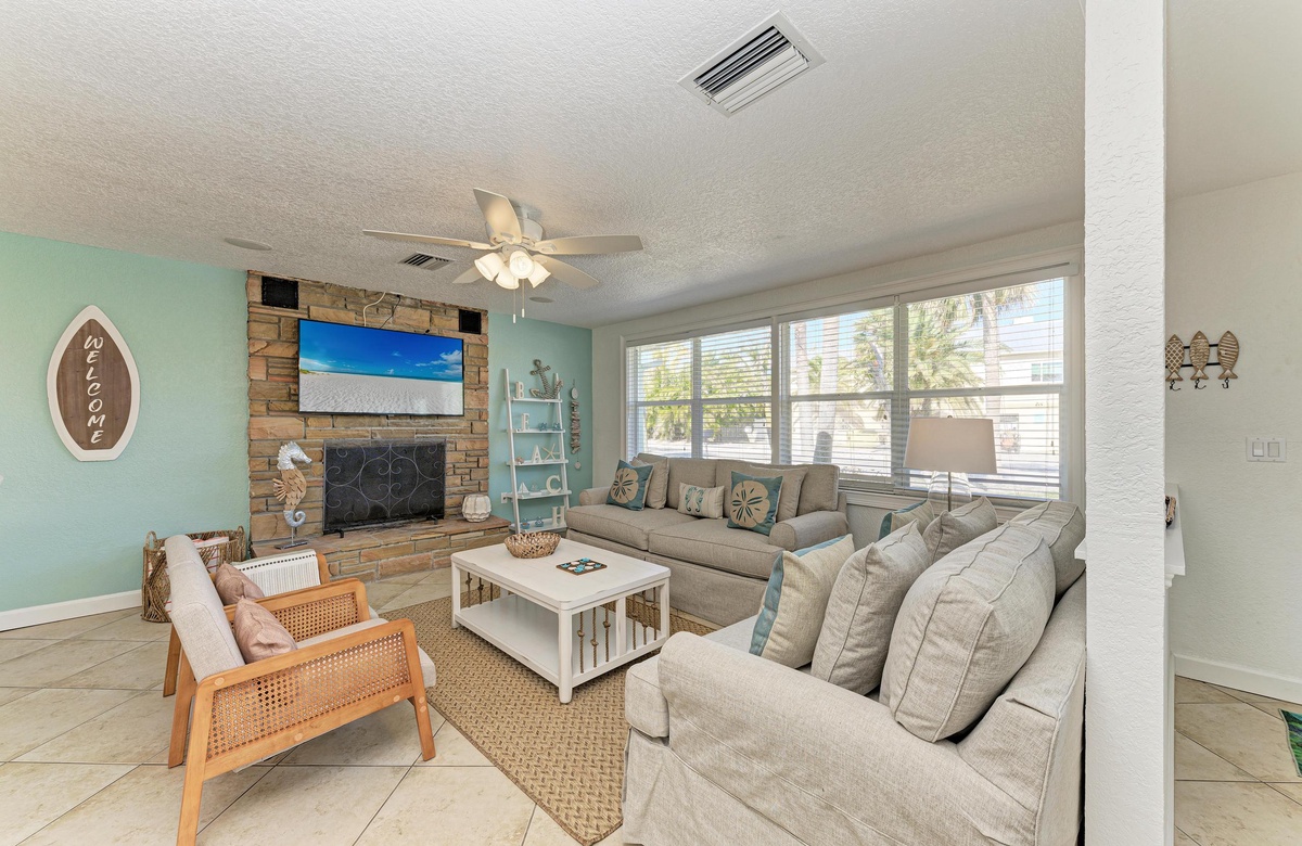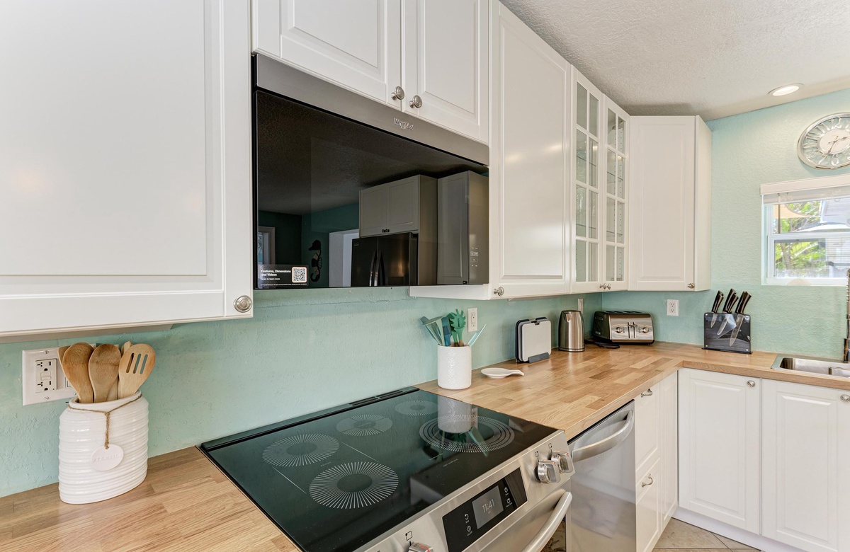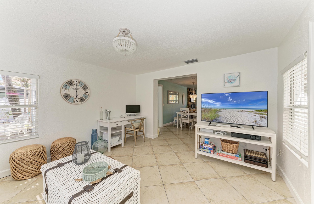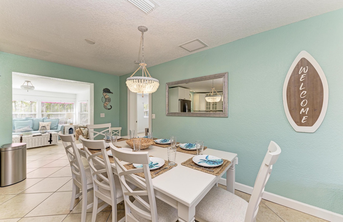 Der offene Grundriss von Küche, Wohn- und Essbereich sind im beruhigenden, Küstendekor gehalten und bieten ausreichend Platz für Ihre gesamte Familie. Küche und Esszimmer machen gemeinsames Essen mit der Familie zum Vergnügen! Die schicke Küche ist gut ausgestattet, inklusive der Edelstahlgeräte und Geschirrspülmaschine. Am Esstisch finden bis zu 10 Gäste Platz und zusätzlich vier an der Kücheninsel. Alle können hier bequem zusammenkommen!