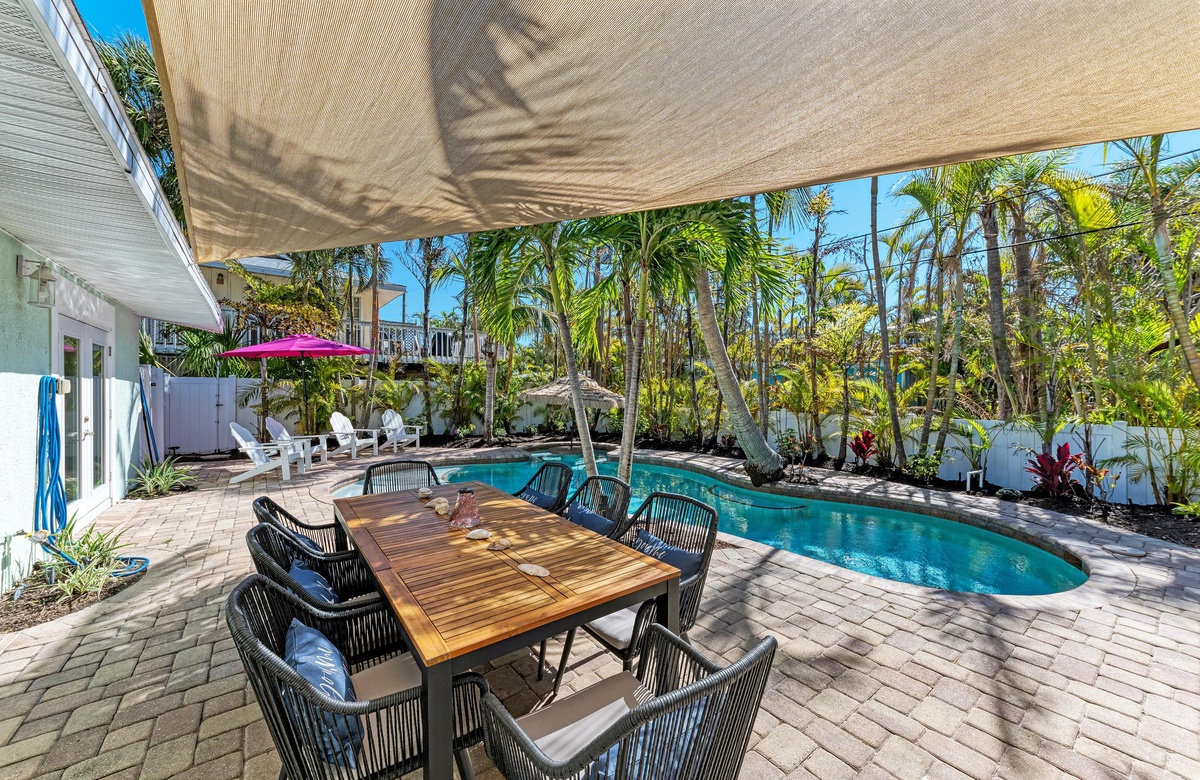 (4) Schlafzimmer (3) Bäder, Gäste (8). Kurzer Spaziergang zum Strand, beheizter Pool, WLAN, Waschmaschine/Trockner, Geschirrspülmaschine. Parkplätze für 2 Fahrzeuge, fußläufig zum kostenlosen Inselshuttle.