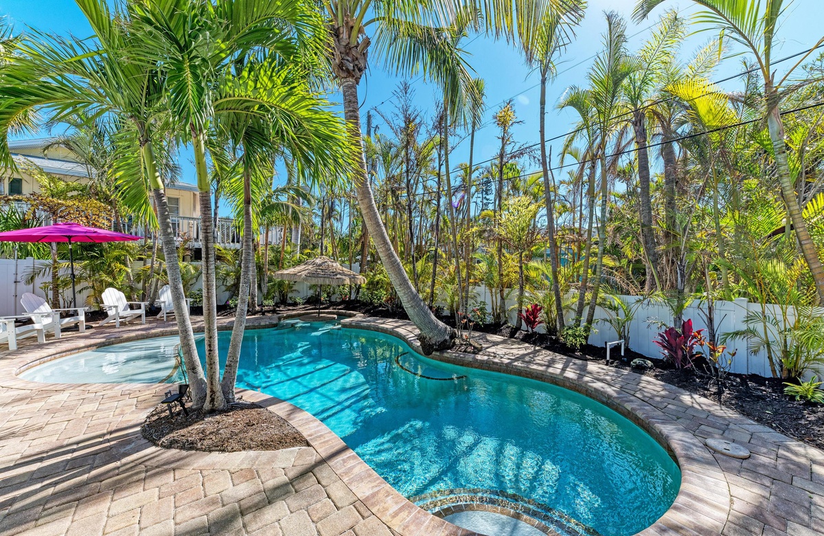 “Tina’s Piece of Paradise” ist perfekt für viele Gäste und befindet sich in Holmes Beach, 407 80th Street.