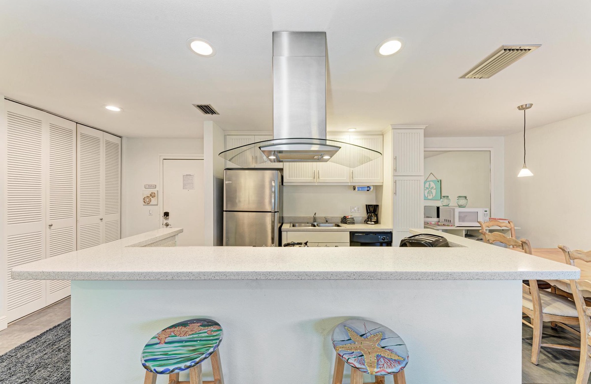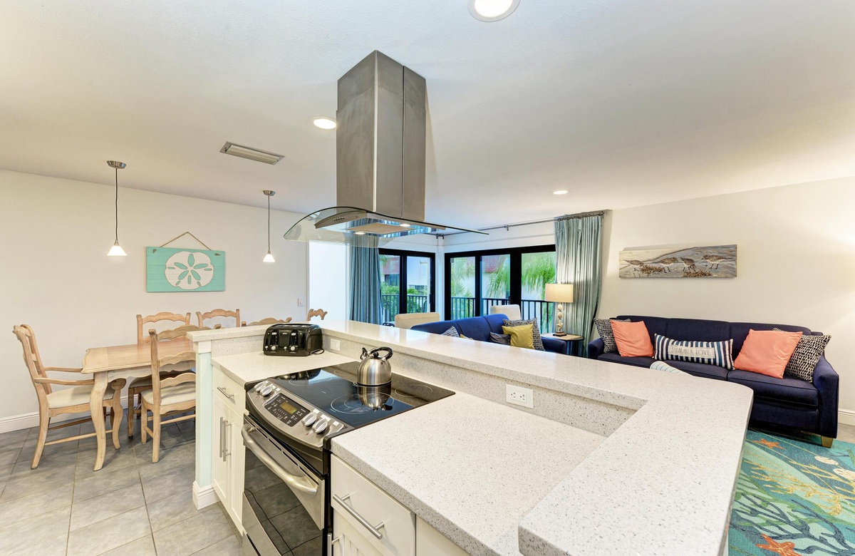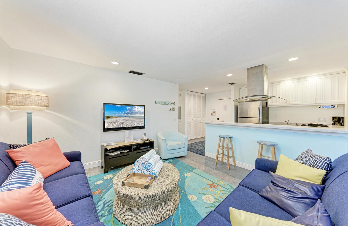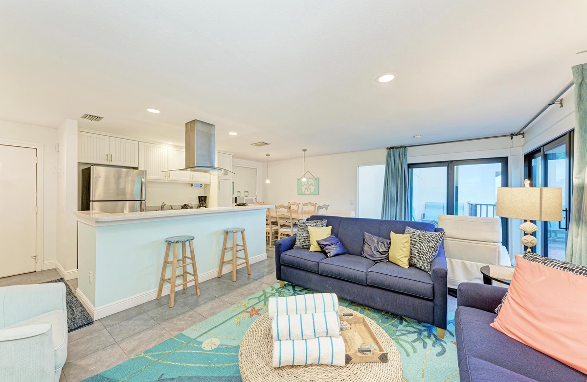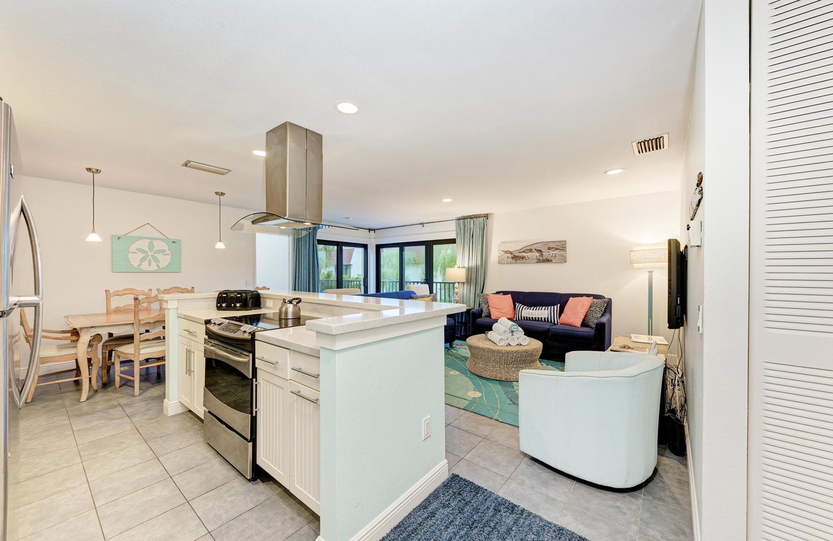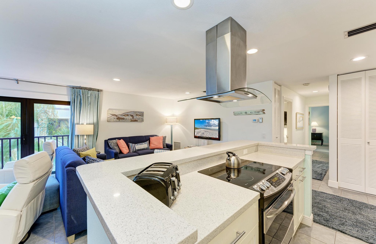 Die für 4 Personen großzügige Holmes Beach Ferienwohnung ist fabelhaft eingerichtet und vermittelt das wahre Inselgefühl! In diesem modernisierten Objekt bietet die Küche neuere Geräte, inklusive Geschirrspüler, hübsche Arbeitsflächen und einem Ceran-Herd und Ofen. Neben der schönen Küche befindet sich der Essbereich mit Sitzgelegenheiten für sechs oder Sie genießen einen Insel Cocktail in der Sonne auf dem Balkon. Im Wohnbereich finden Sie komfortable Möbel, WLAN, Flachbild-TV, Schiebetüren auf den Balkon und endlosen Florida Charm. Der perfekte Ort, um zu entspannen und mit Freunden über den langen Tag am Strand zu plaudern.