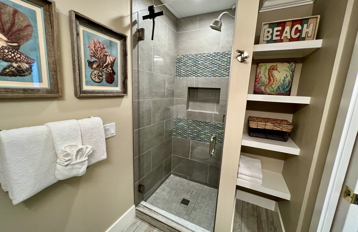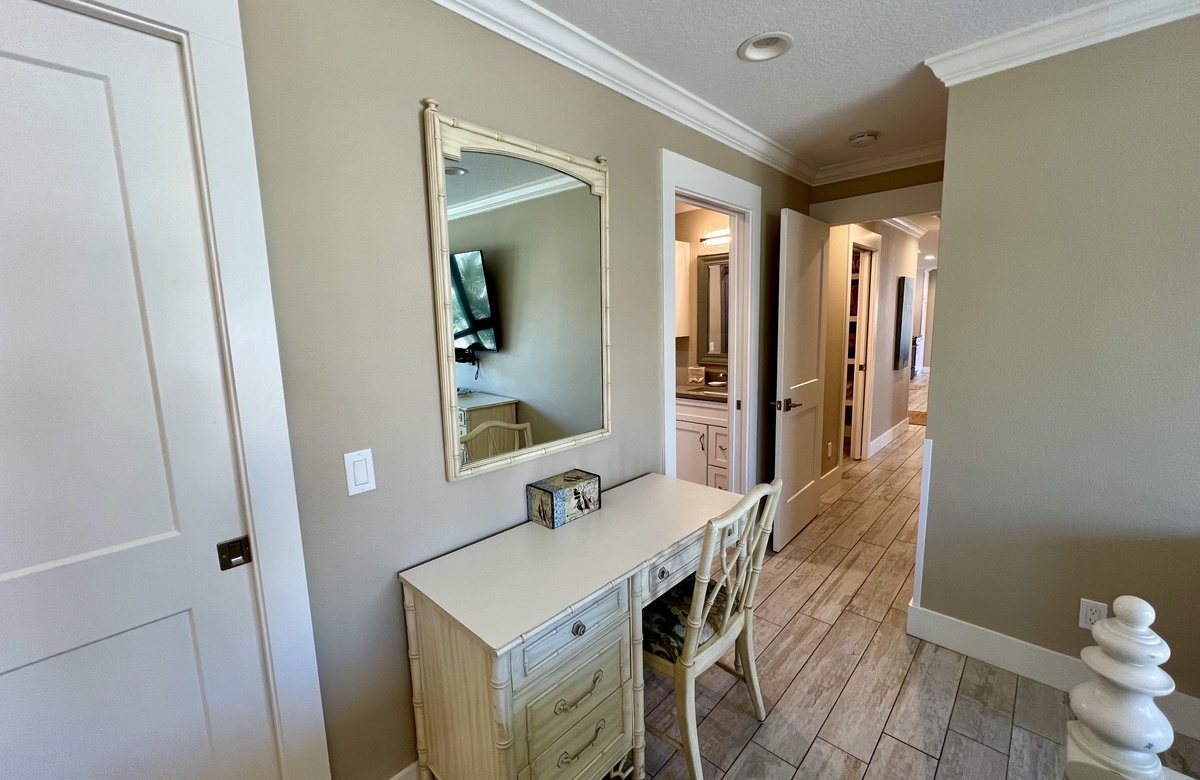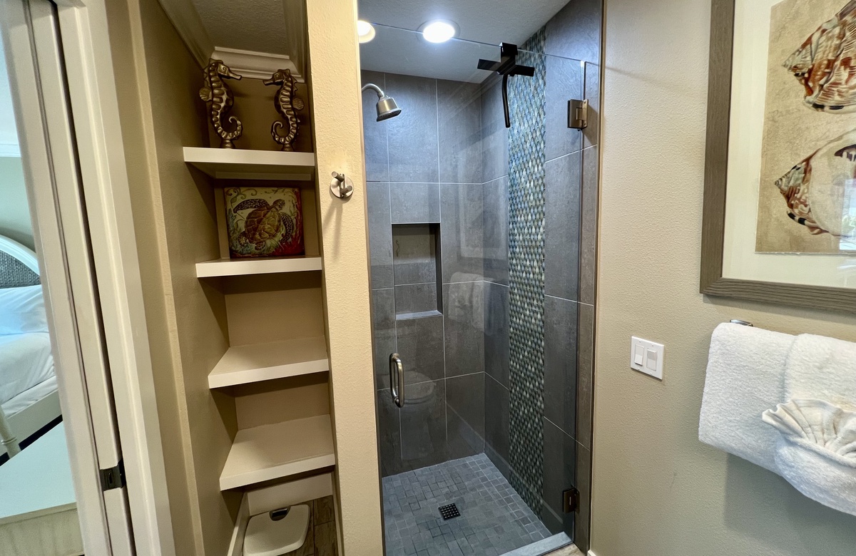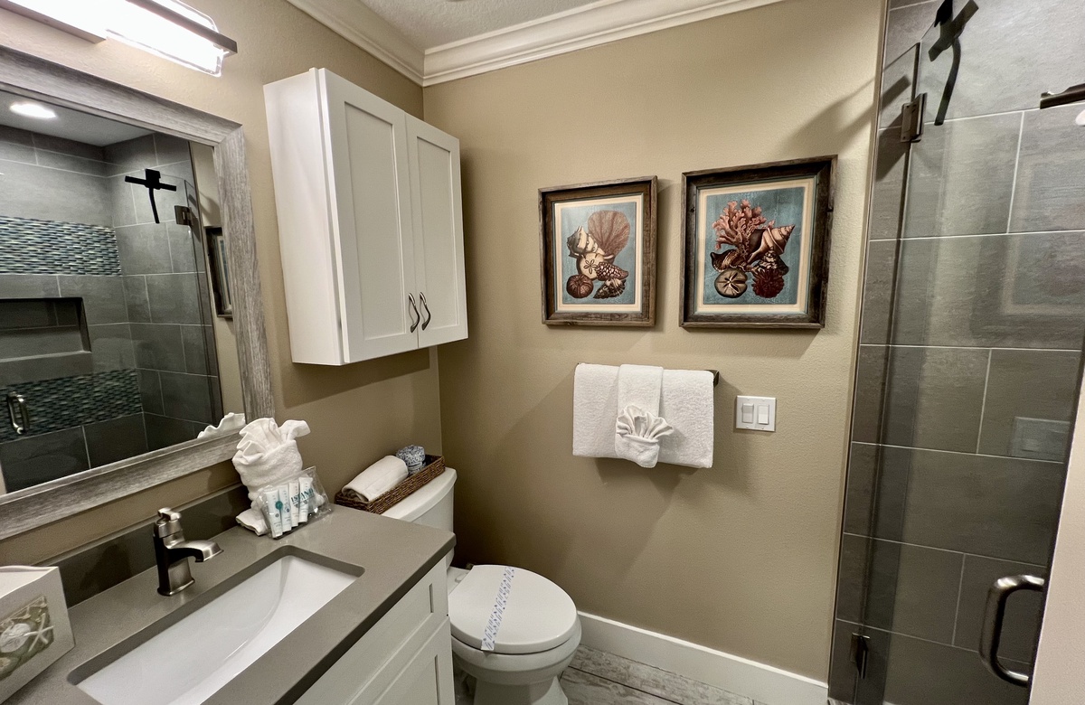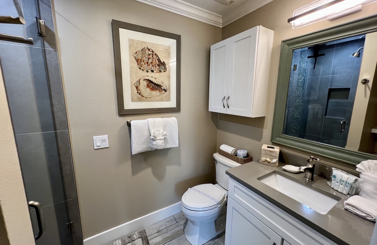 Das Apartment liegt in Holmes Beach im 1. Stock und verfügt über 2 Schlafzimmer und 2 Bäder. Hier wohnen bequem bis zu 6 Personen. Das Hauptschlafzimmer verwöhnt mit einem großen Doppelbett (King) und einem en-Suite-Bad mit einer begehbaren Dusche. Das zweite Schlafzimmer ist mit einem Doppelbett (Queen) ausgestattet. Ein Schrankbett im hinteren Teil des Wohnbereichs bietet zusätzliche Schlafgelegenheiten. Alle Zimmer sind lichtdurchflutet und haben Blick auf den tropischen Garten bzw. Poolbereich und bieten Flachbild-TVs. Der offen gehaltene Grundriss und komplett ausgestattete Küche erleichtern das gemütliche Zusammensein.