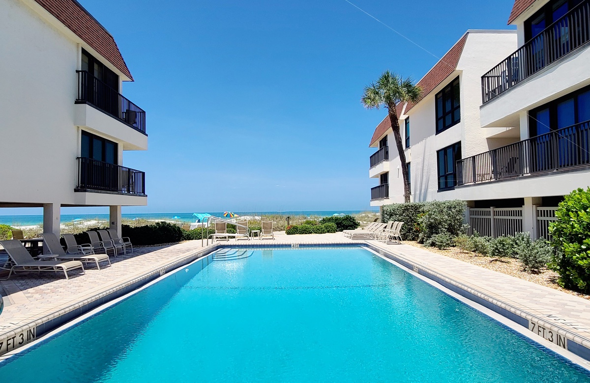 In der Anlage befindet sich ein großer beheizter Gemeinschaftspool, Aufzug, überdachte Parkplätze sowie Zugang zu Tennisplätzen auf der gegenüberliegenden Seite des Gulf Drives. Die Haltestelle des kostenlosen Insel-Shuttle ist fußläufig nicht weit und bringt Sie zu allen interessanten Orten auf der Insel, wie zu leckeren Restaurants, schicken Boutiquen und Kunstgalerien oder eben zu anderen absolut sehenswerten Strandabschnitten nördlich oder südlich der Insel.