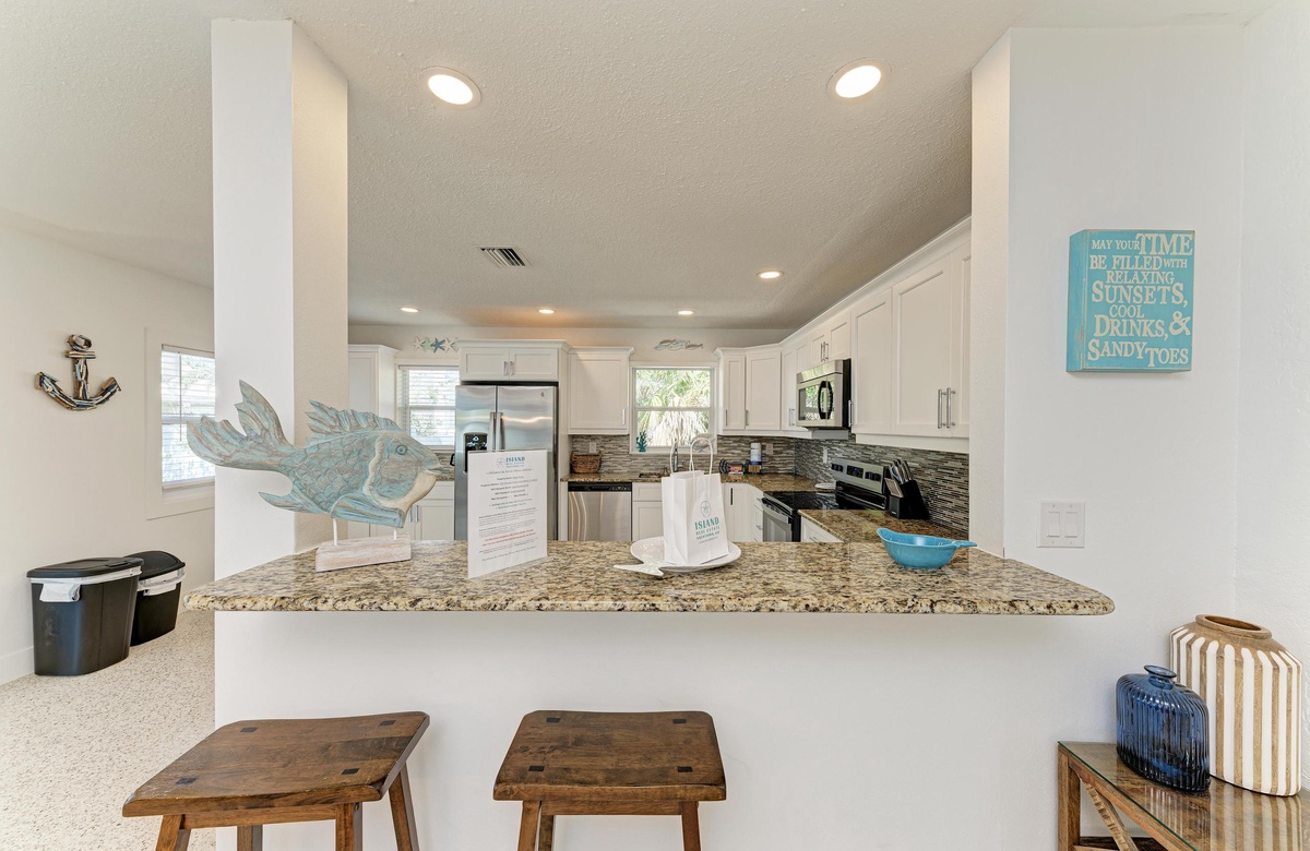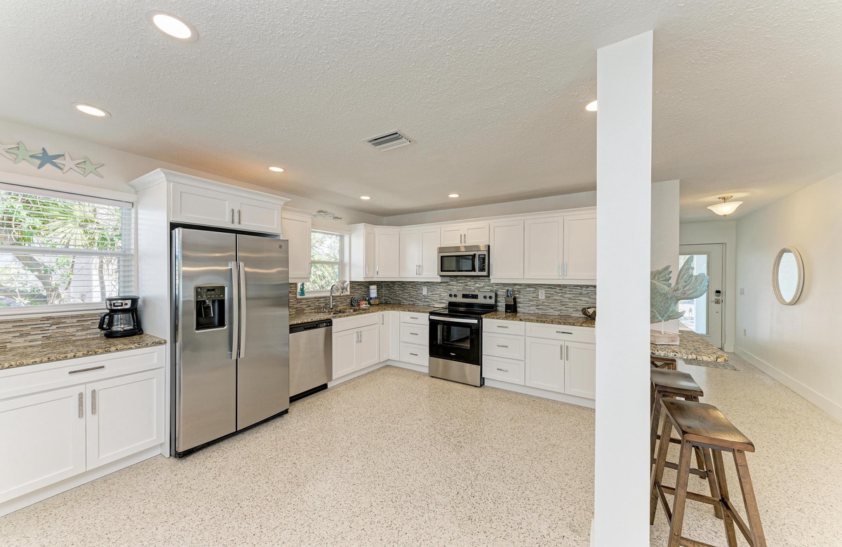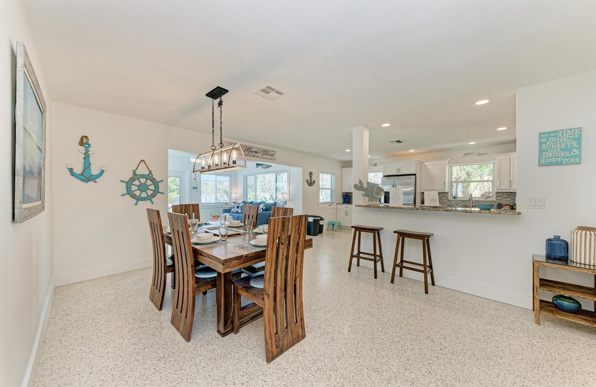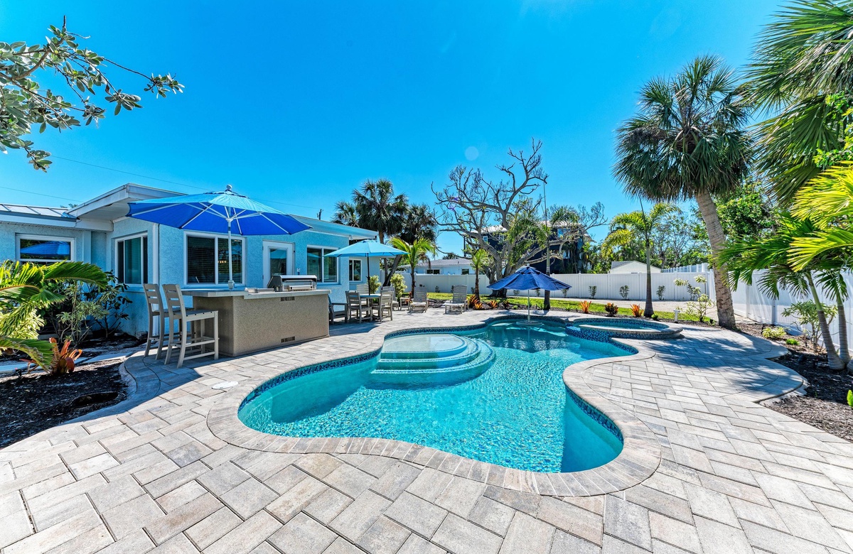Willkommen in Ihrem Inselparadies-Urlaub im sonnigen Anna Maria, den Sie sich wünschen und durch den Besuch bei "Wave N' Sea" wahr werden lassen können. Dieses Haus mit drei Schlafzimmern ist für 6 Gäste großzügig und liegt weniger als zwei Häuserzeilen entfernt vom hoch geschätzten Bean Point Strand und hat damit die perfekte Insellage. Dieses Haus glänzt mit einem brandneuen, privaten und beheizten Pool in üppiger Tropenvegetation im übergroßen Garten.