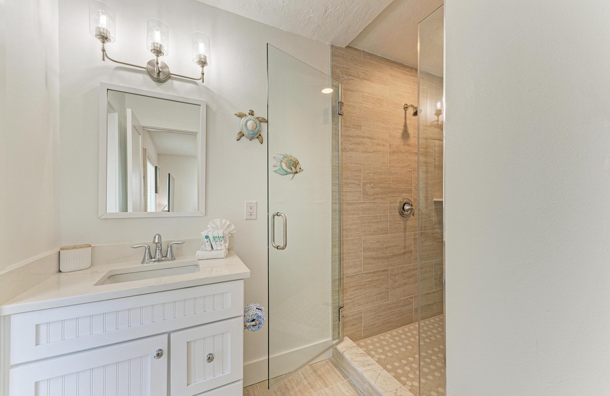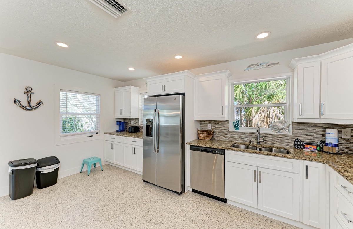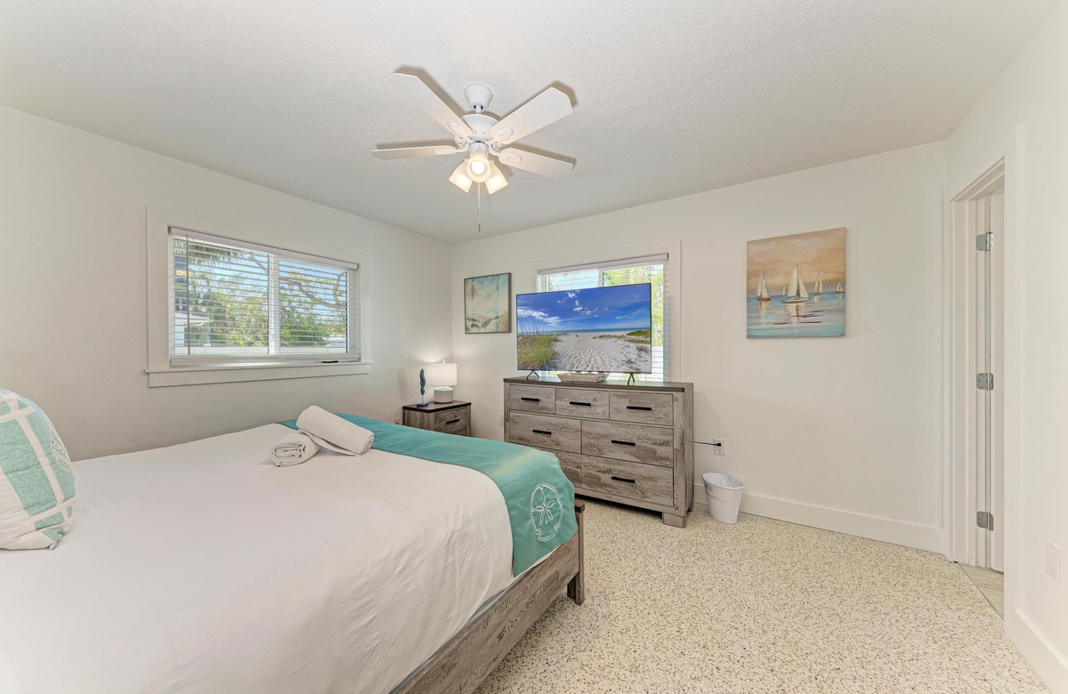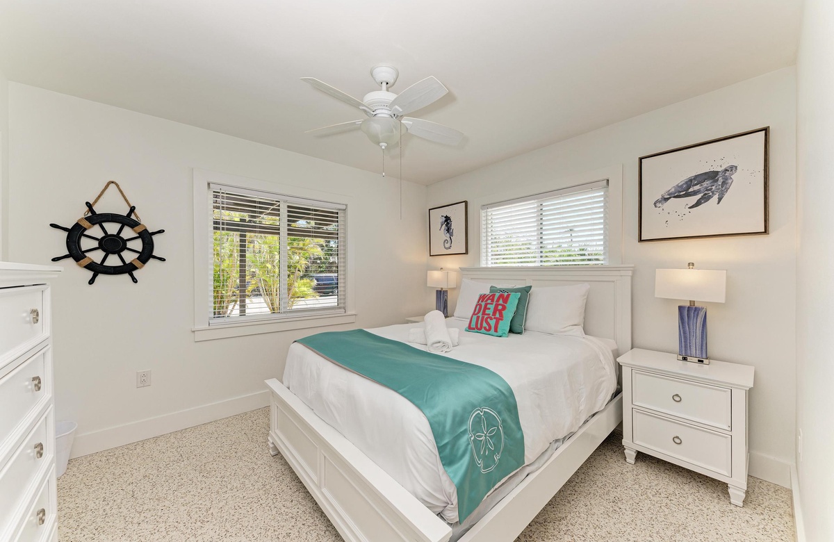 Sie werden sich sofort in dieses Anna Maria Island Ferienhaus im alten Florida-Charm in perfekter Lage verlieben. In einer ruhigen Nachbarschaft am oberen Ende der Insel gelegen, befindet sich “Wave N' Sea” in Gehweite zu den schönsten Stränden Floridas. Genießen Sie den Blick auf den Golf von Mexiko, die Tampa Bucht und die Sunshine Skyway Brücke vom Bean Point aus, mit seinem puderweißen Sand und blauen Wasser. Spazieren Sie hinüber zum Rod and Reel Pier, um auf dem Anleger zu essen. Das Lokal bietet für jede Tageszeit das richtige Gericht und vor allem frischen Fisch. Oder Sie schnappen sich eine Angelrute und fangen Ihr eigenes Abendessen.